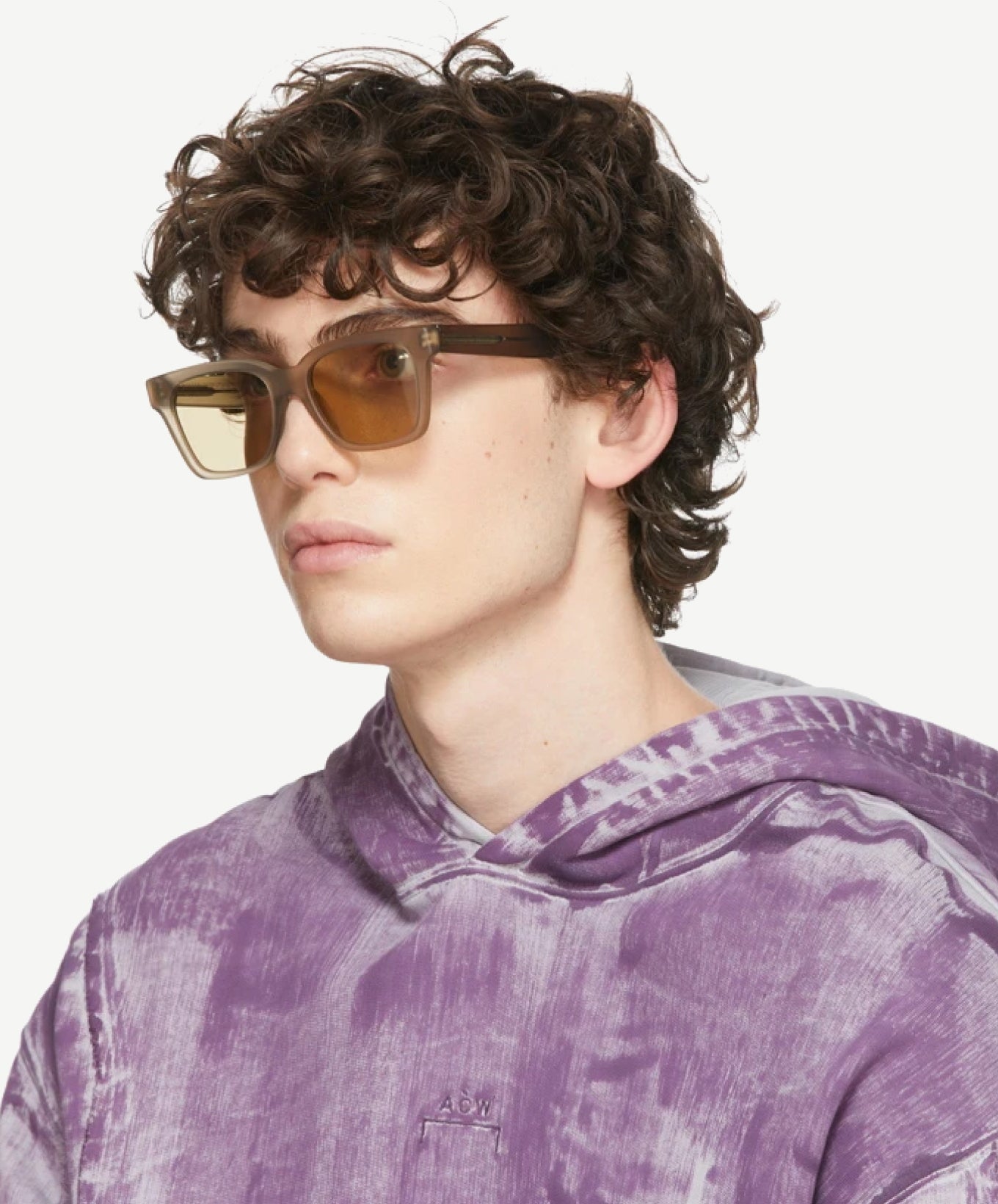 Crafted for A Cold Wall, this America edition embodies the brand's architectural style. Futuristic laser-engraved details blend with minimalism. Geometric design, crystal acetate front, tone-on-tone lenses. Temples layer laser grid, crystal, and faded grey acetate.