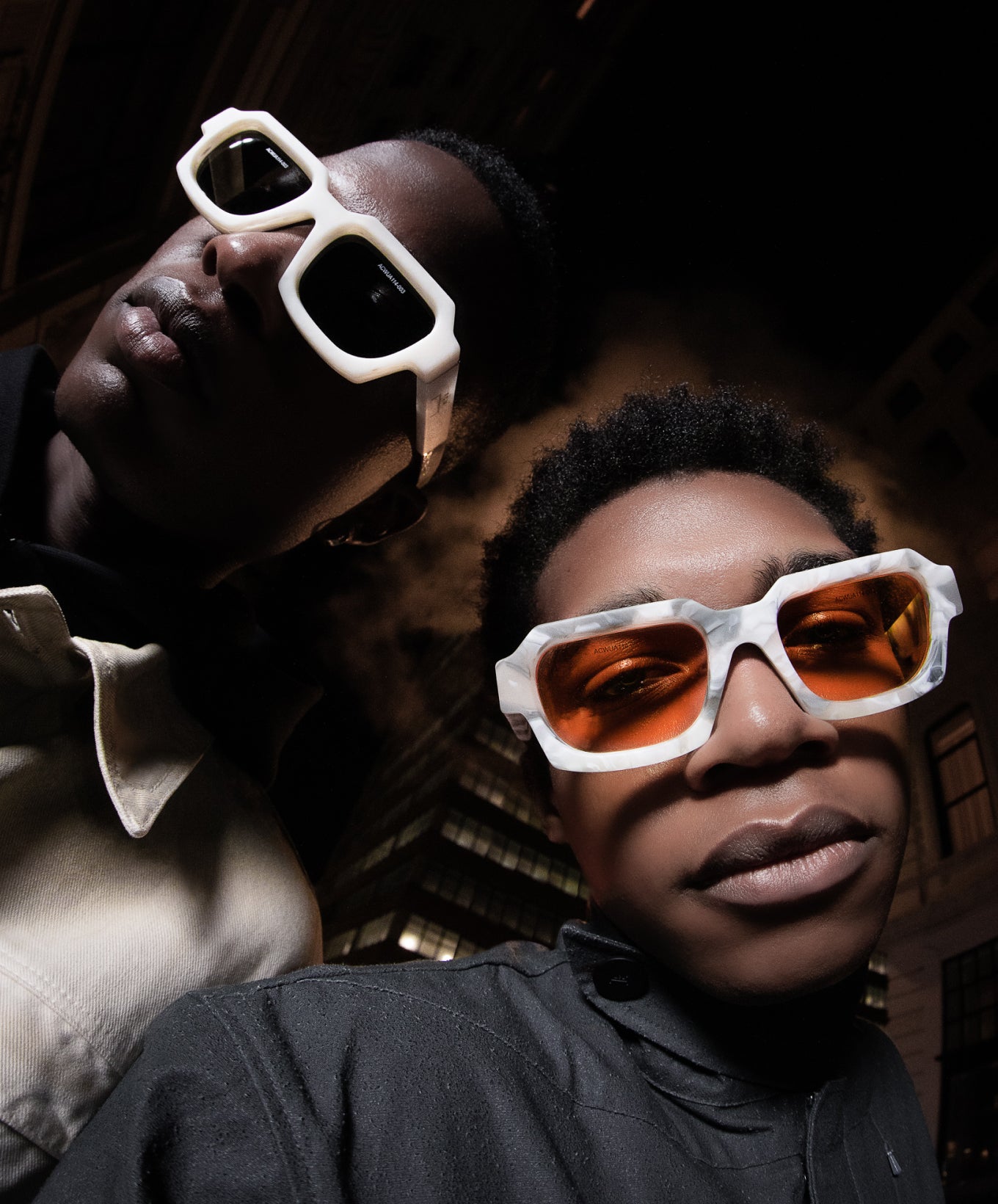 Created for cult British menswear brand A Cold Wall, this Caro edition is eyewear that speaks volumes. Thick profile, square lenses – its solid acetate geometric design echoes ACWs architectural exploration. Matte grey marble, electric blue accents, tinted lenses, and crystal temple tips combine impeccably.