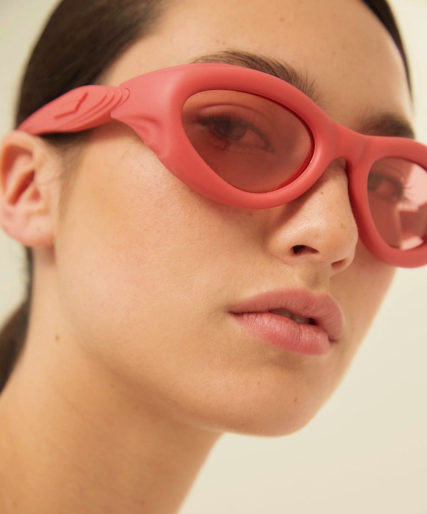 Bottega Veneta revamps cult accessories, reminding us of the joy in dressing up. Rubber-crafted sunglasses flaunt chunky round cat-eye frames. Guard them in the included case for a pristine look.
