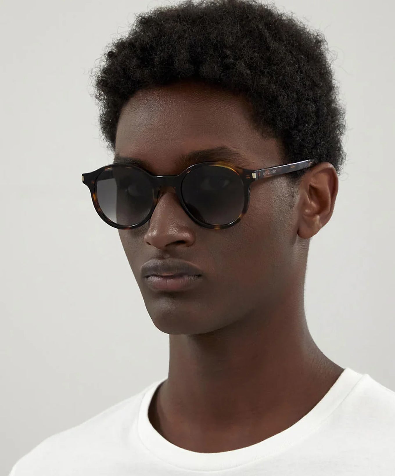 From Saint Laurent's men's SS23 show, a small classic round shape stands out with the iconic corner angle, exuding timeless style.