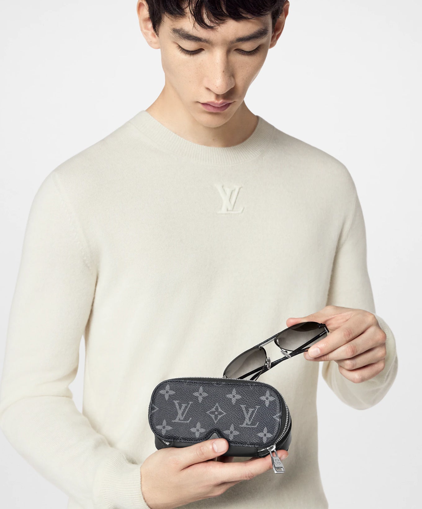 The Sunglasses pouch GM accommodates larger eyewear. Louis Vuitton signature, allover Monogram print on the outside for enthusiasts. Leather, Monogram Eclipse canvas ensure safety, functional zip closure for travel convenience.